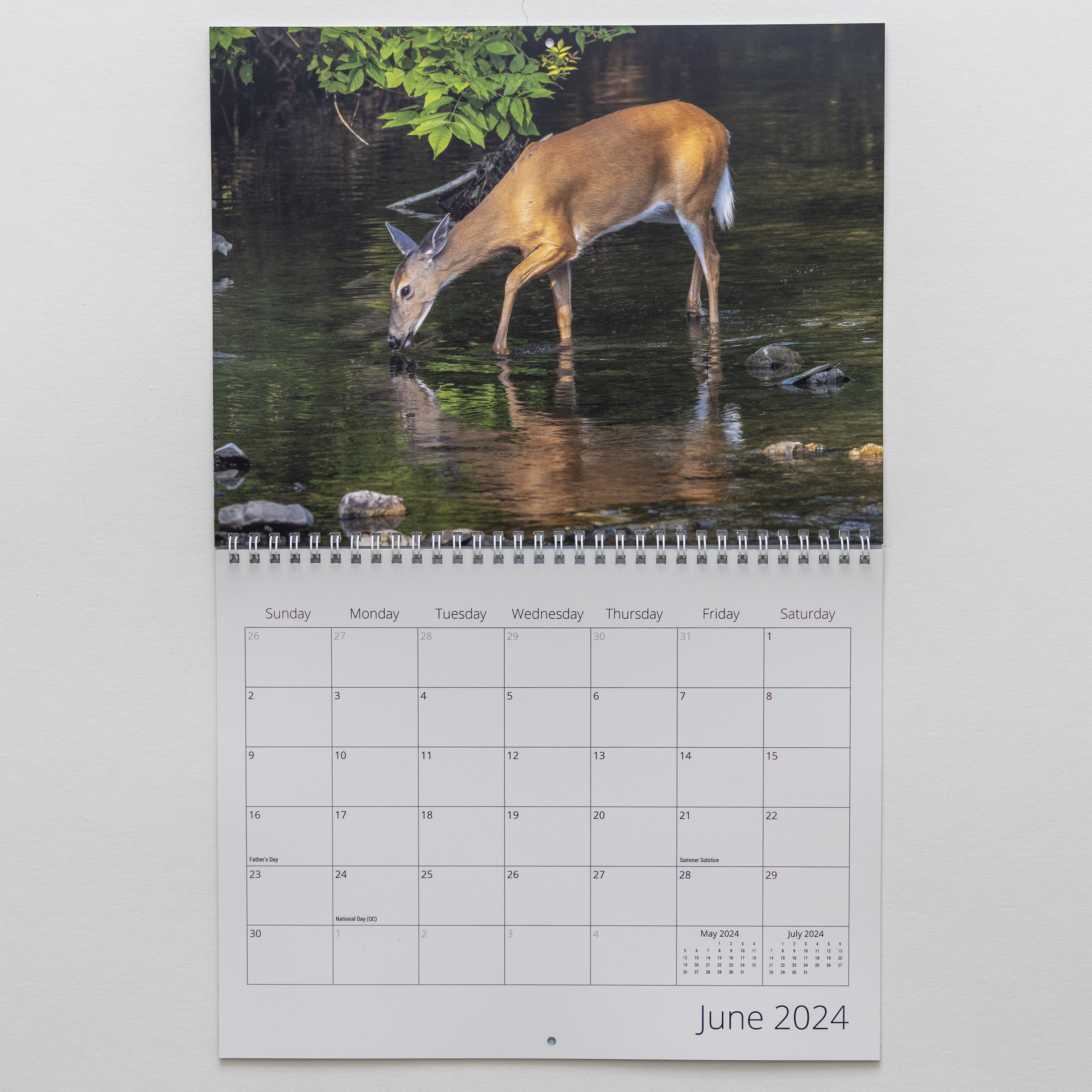 Coil-bound calendar featuring full-color photography of wild animals in their natural habitats.