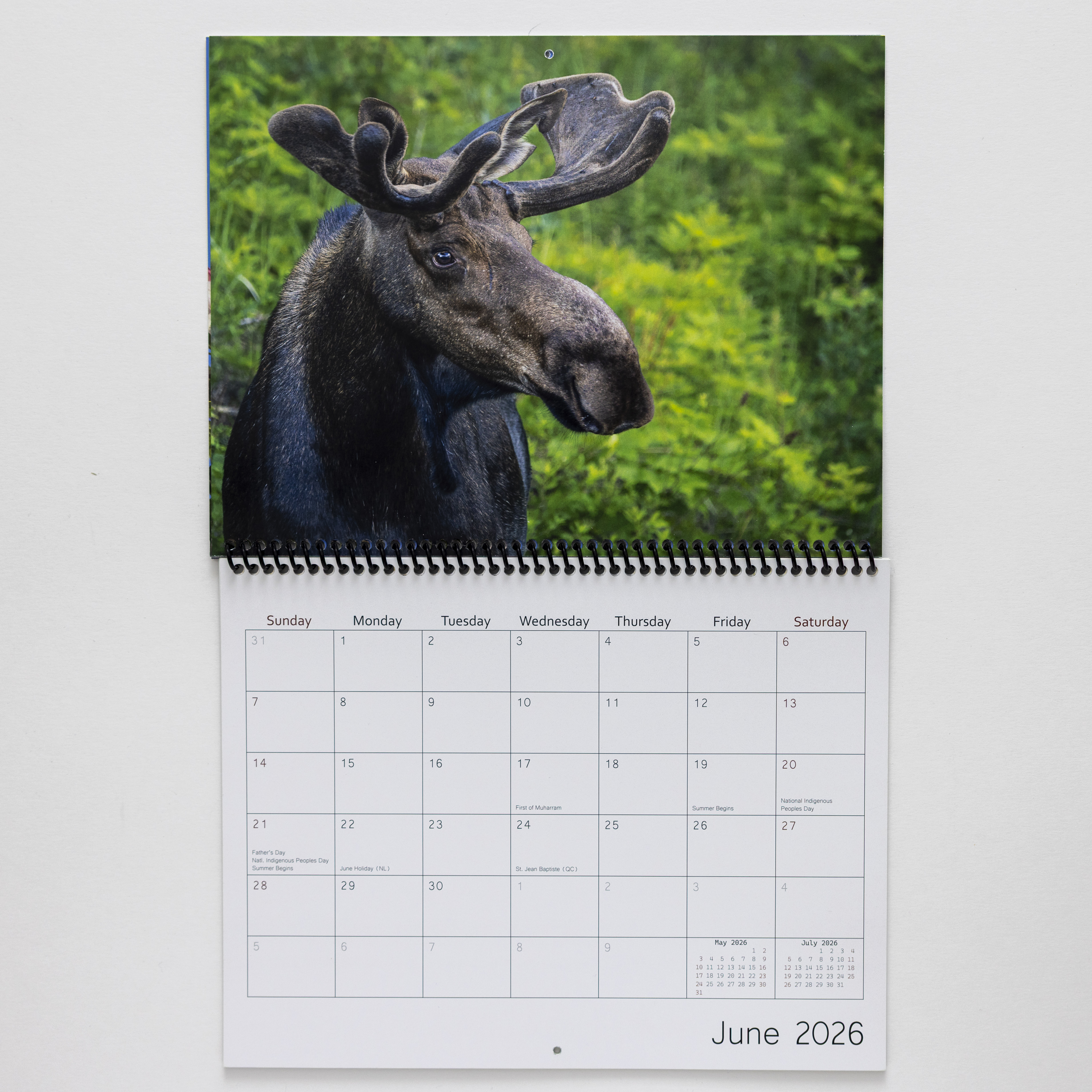 A spiral-bound calendar featuring full-colour photography of wild animals in their natural habitats.